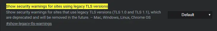 Google Chrome since version 81 (released in March 2020), removed the support for TLS 1.0 and 1.1 and is asking administrators to immediately enable the TLS 1.2 or later. The full screen interstitial warning is shown to users who visit a website that uses the old TLS.
